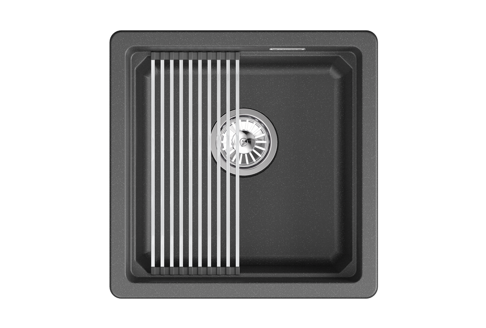Кухонная мойка Granula – это не только стильный и функциональный элемент кухонного интерьера, но и практичное решение для установки под столешницу в шкаф 500 мм. Односекционная мойка квадратной формы 450х450 мм имеет удобную площадку внутри чаши для установки ролл-мата или разделочной доски, что облегчает процесс приготовления пищи. Мойка выполнена из кварцевого композитного материала высокой плотности и гигроскопичности, что обеспечивает не менее 20 лет надежной эксплуатации. Ролл-мат и дозатор из нержавеющей стали идут в комплекте. Доступна в 4 цветах и входит в серию Kitchen Space KS-4501U. Позвольте себе комфорт и удобство в кухне с кухонной мойкой Granula под столешницу.