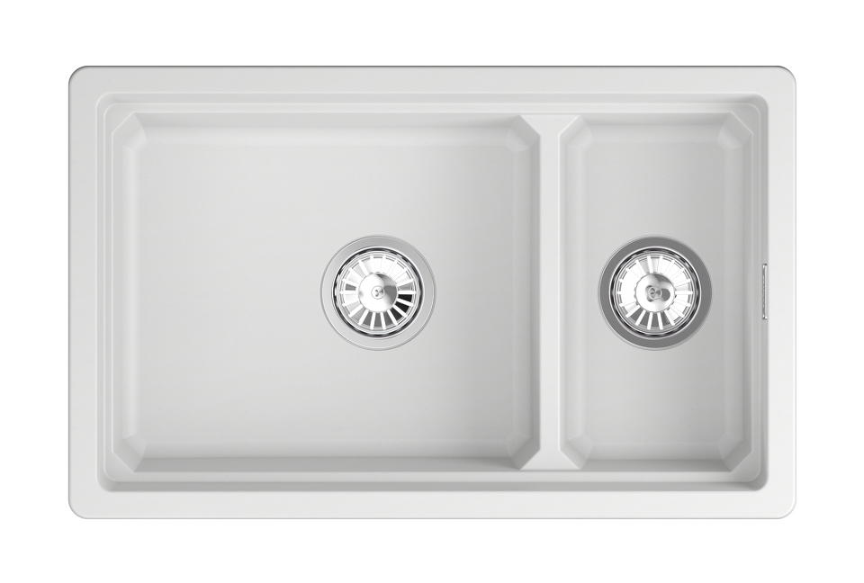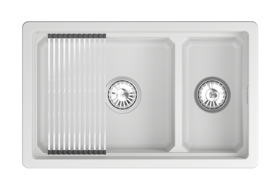 Двухсекционная мойка прямоугольной формы для установки под столешницу в шкаф 800мм. В каждой чаши мойки есть удобная площадка для установки ролл-мата или разделочной доски. Мойка выполнена из кварцевого композитного материала высокой плотности и гигроскопичности, что обеспечивает не менее 20 лет надежной эксплуатации. Ролл-мат и дозатор из нержавеющей стали уже включены в комплект. Выберите GRANULA KS-7804U, чтобы получить привлекательный и удобный аксессуар для вашей кухни.