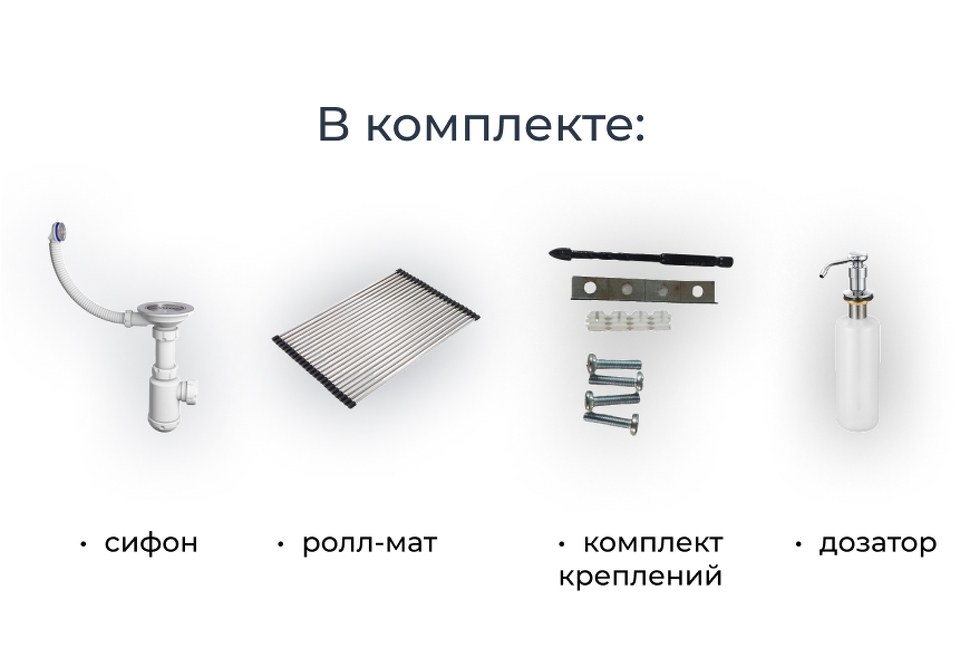 Мойка российского производителя Granula. Двухсекционная кухонная мойка прямоугольной формы для установки под столешницу в шкаф 800мм. Представляет собой инновационный комплекс с удобной площадкой внутри чаши для установки ролл-мата или разделочной доски. Выполнена из кварцевого композитного материала высокой плотности и гигроскопичности, что обеспечивает не менее 20 лет надежной эксплуатации. Ролл-мат и дозатор из нержавеющей стали идут в комплекте.