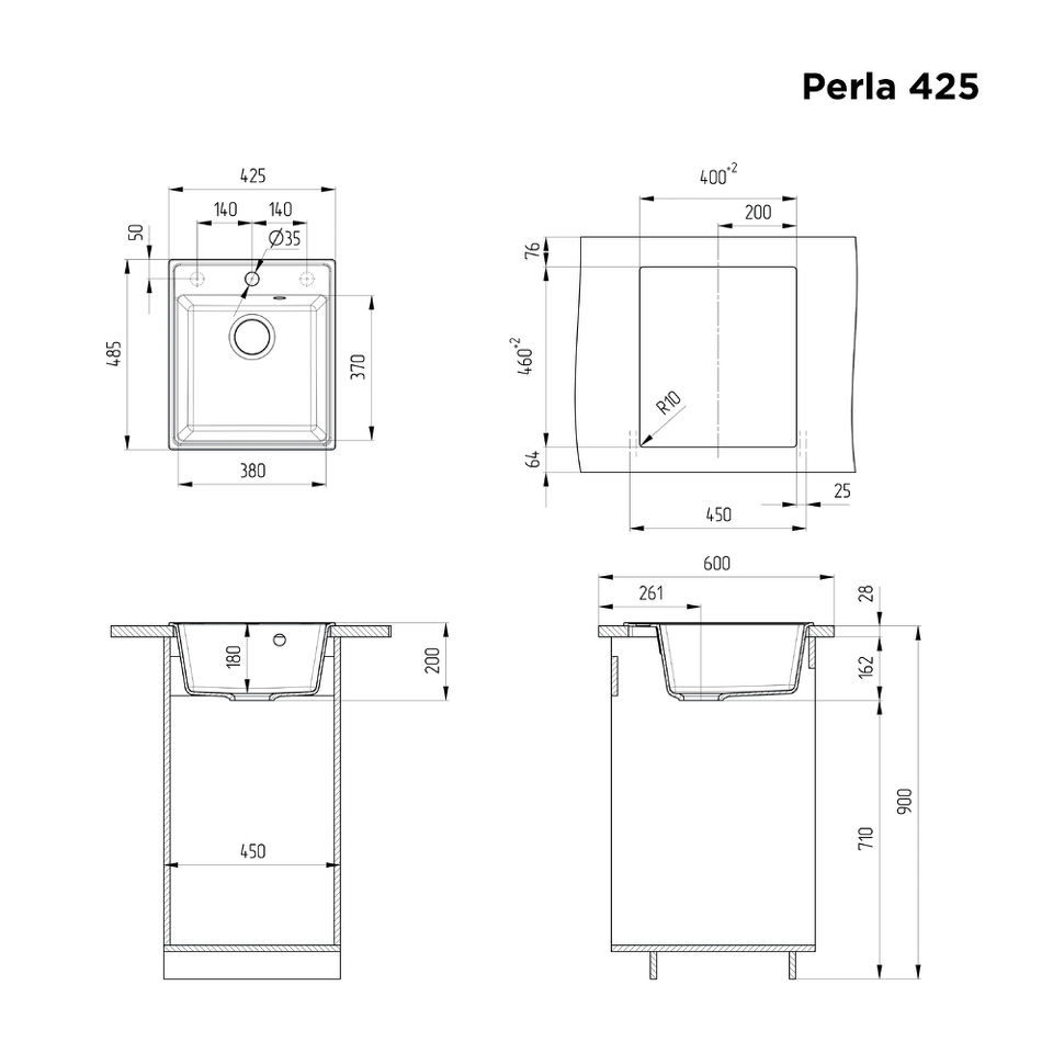 Мойка является односекционной, с отверстием под смеситель, при этом существуют 2 дополнительно намеченных отверстия под аксессуары (дозатор или клапан-автомат). Данная мойка имеет современный дизайн и прекрасно подходит для малогабаритной кухни.