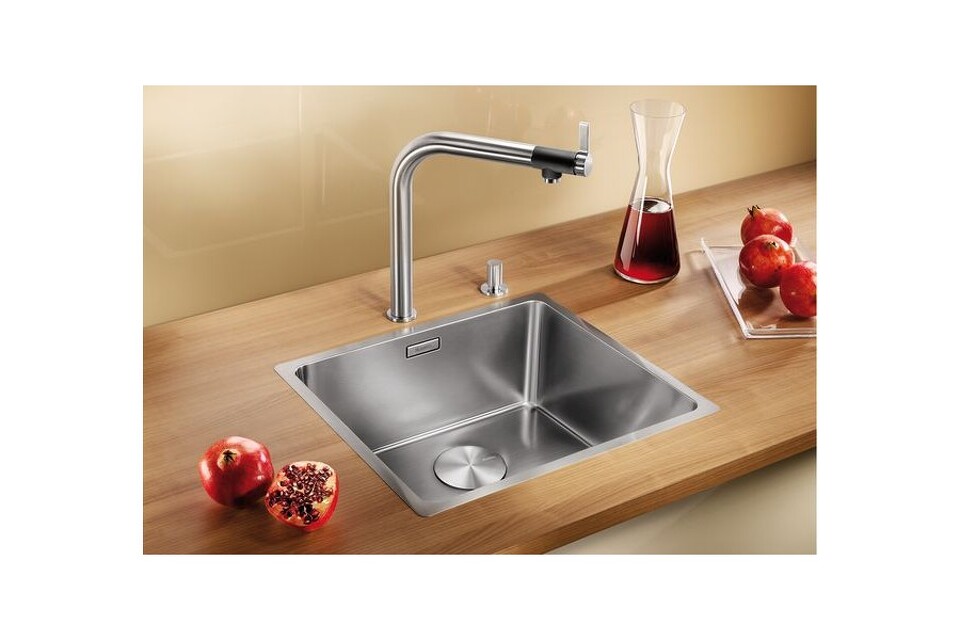 Мойка Blanco Andano 450-IF — вместительный универсальный вариант для установки в шкафы от 50 см. Глубокая чаша, толстые стальные стенки и приятный глазу блеск полировки украсят рабочую поверхность. В комплекте со смесителями родной фирмы модель будет отлично смотреться и бесперебойно функционировать.