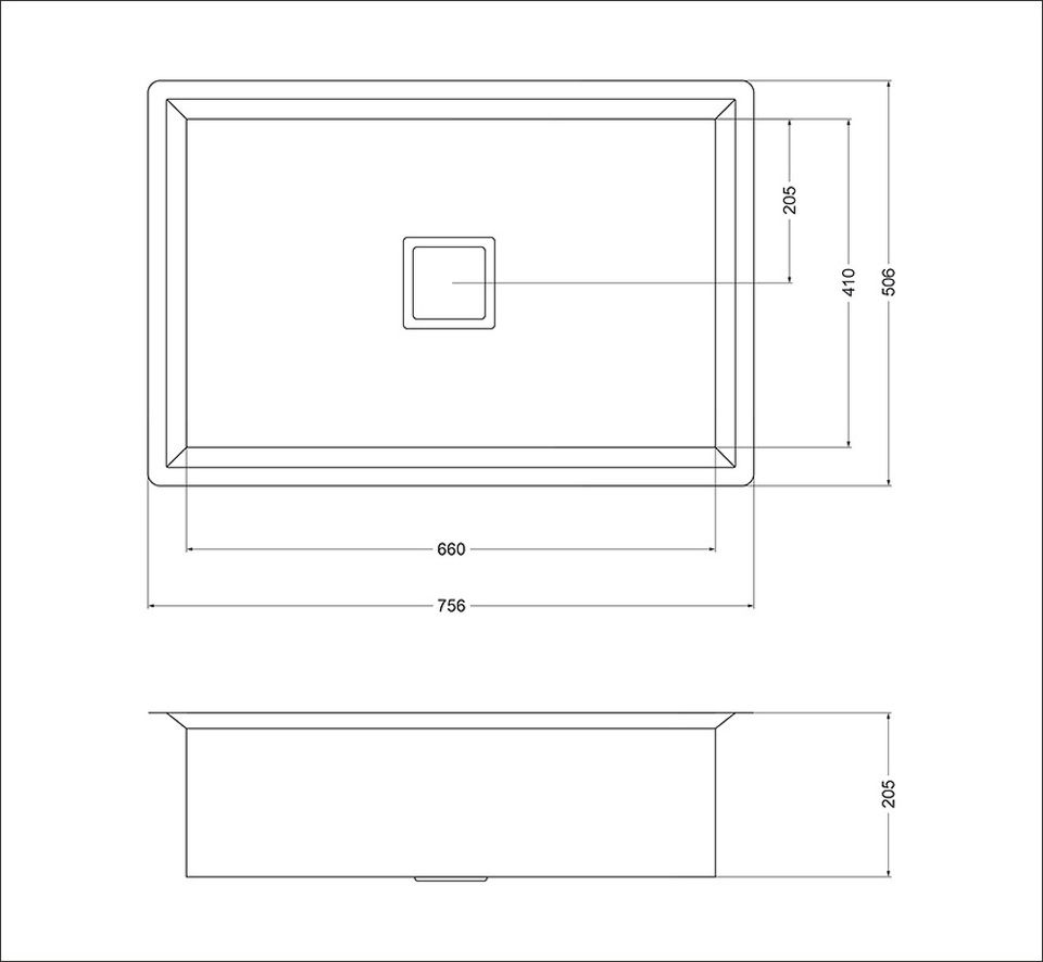 Размеры мойки: 756 x 506 мм
