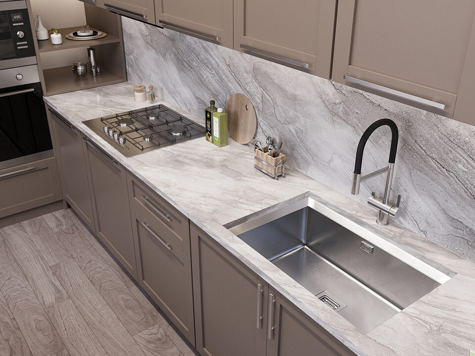 Мойка из нержавеющей стали AISI. AISI 304 содержит 18% хрома и 9% никеля, что обеспечивает максимальную устойчивость к коррозии. Шлифованная поверхность моек OULIN достигается по технологии Satin Finish Brushing. С обратной стороны, на дне чаши, находятся резиновые шумопоглащающие накладки и антиконденсатное покрытие, что делает мойку бесшумной.