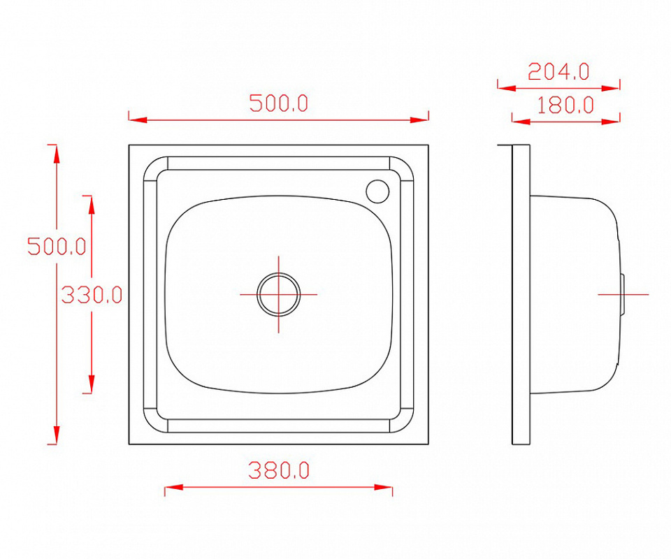 Общий размер - 500*500 мм Размер чаши - 400*400 мм Глубина чаши - 180 мм Толщина стали 0,8 мм Цвет - Декор