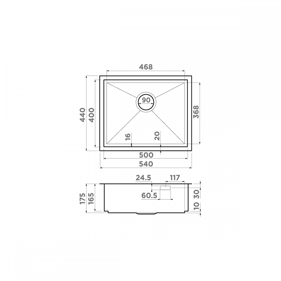 • Kasen 54-16 — увеличенная мойка, которая подходит для изделий с материалом толщиной 12 мм (компакт, акриловый камень весь, кварц, керамика);