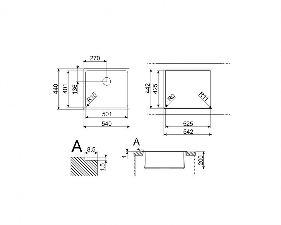 Угловая мойка Нет