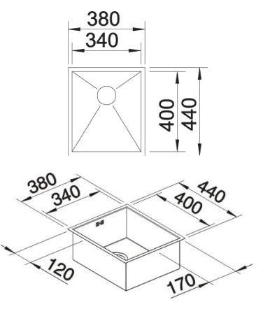 Фото Металлическая мойка Blanсo ZEROX 340-U нерж.сталь зеркальная полировка с отв. арм. InFino