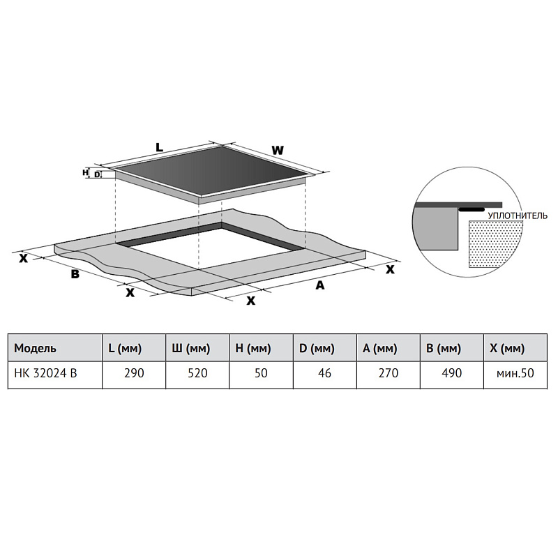 Размер варочной панели Домино