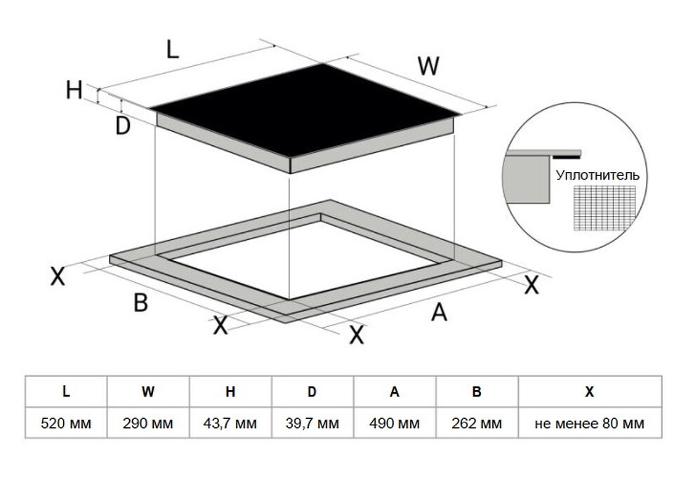 Размер варочной панели Домино