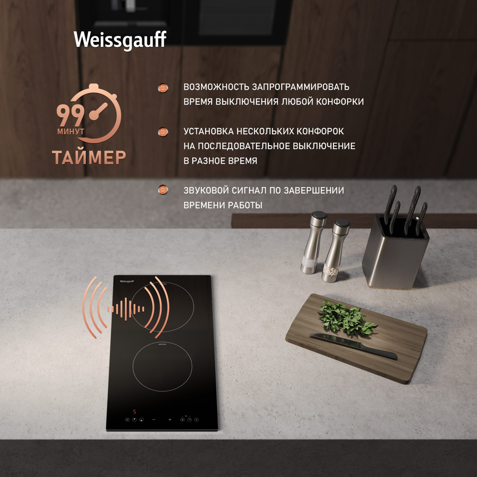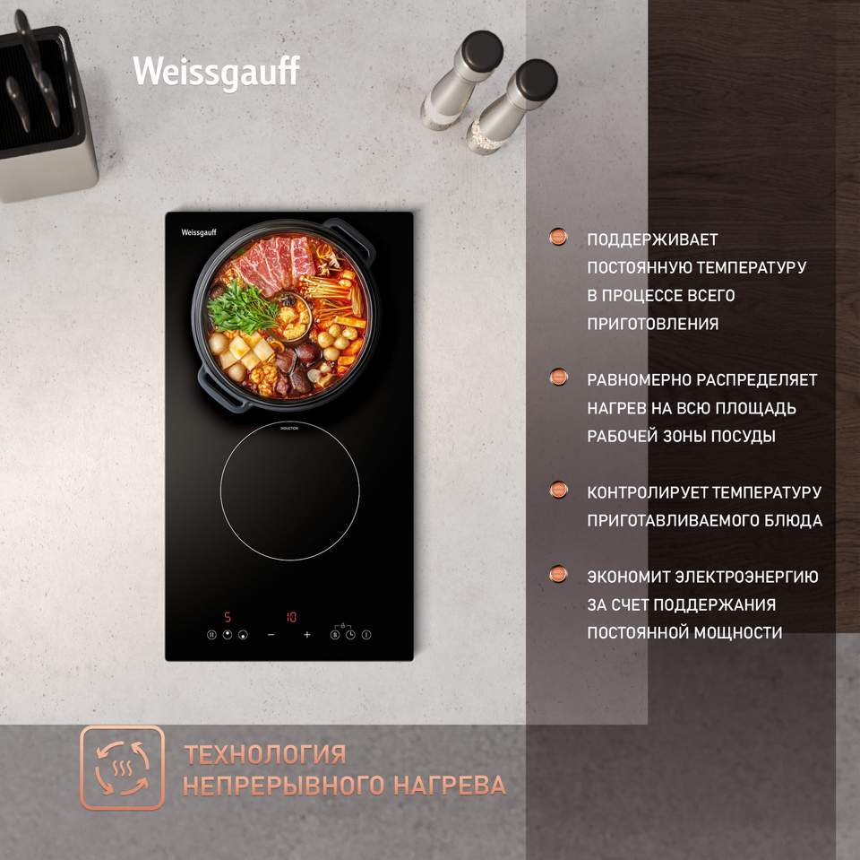 Индукционная панель Weissgauff в дизайне "Домино", оснащенная технологией непрерывного нагрева, выводит на новый уровень понимание того, насколько эффективной может быть компактная индукционная варочная поверхность!
