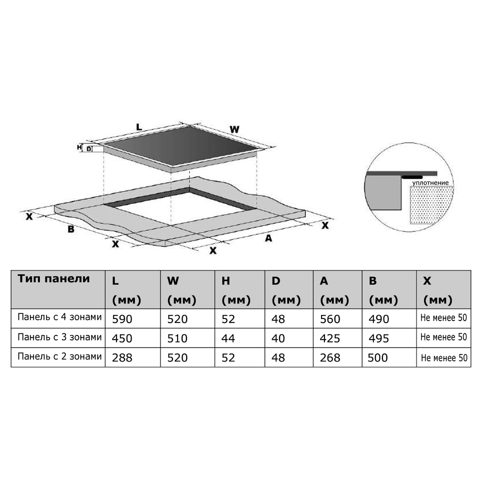 Размер варочной панели 60см
