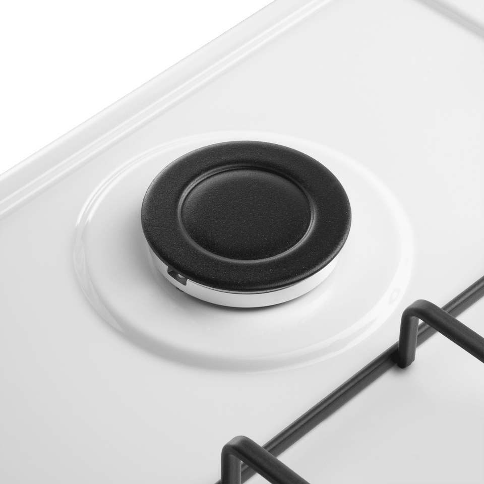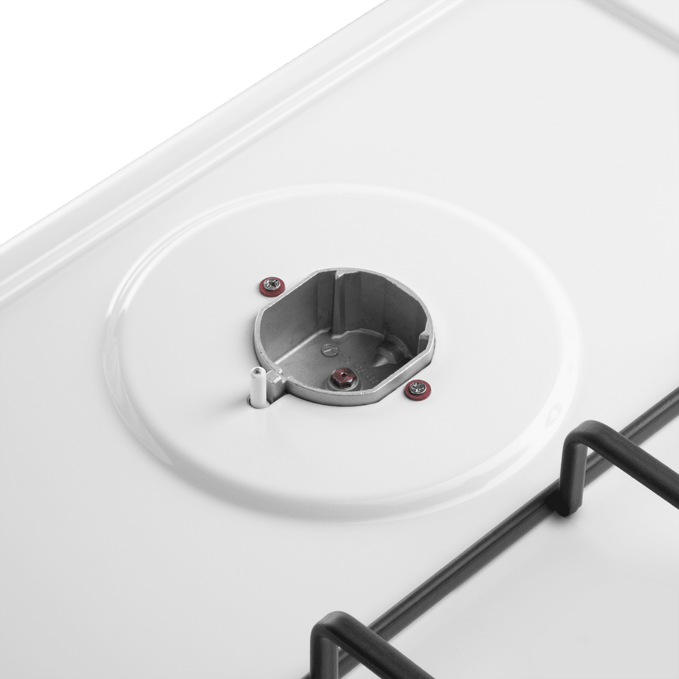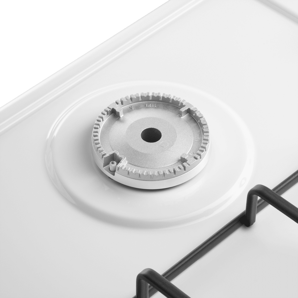 Эмалированные решетки расположены вплотную друг к другу, образуя единую рабочую зону. Благодаря этому, вы можете передвинуть любую посуду с конфорки на конфорку не поднимая ее.