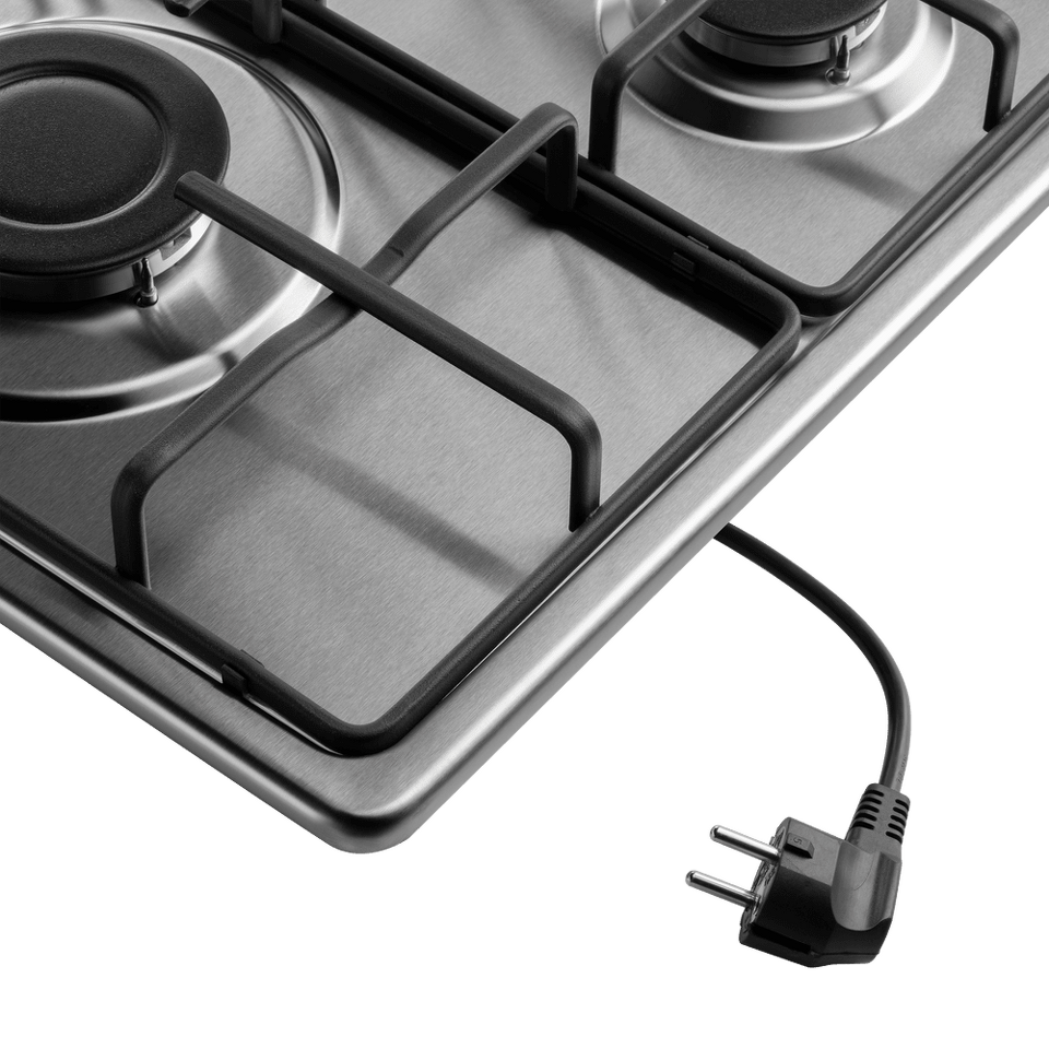 Система газ-контроля надежно защищает бытовой прибор от утечек газа при неожиданном затухании конфорки. Включение варочной панели осуществляется с помощью электроподжига.