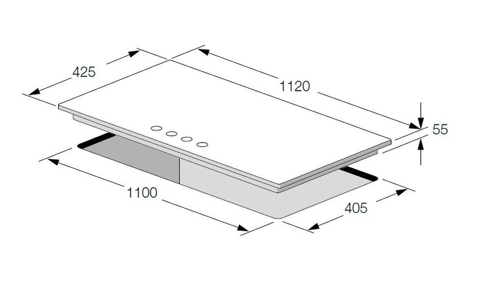 - 4 конфорки, расположенные в одну линию, в т.ч. 2 конфорки WOK (4,0 кВт)