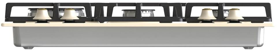 Варочная панель Gorenje GW6D42CLI выполнена в цвете слоновой кости и бронзы с добавлением чёрного. Им служат чугунные решётки. Они имеют затейливую форму, но при этом идеально гладкие, поэтому надёжно удержат всю кухонную утварь. Кроме того, они не деформируются от воздействия огня. Безопасность играет для фирмы немалую роль, поэтому в поворотные регуляторы встроена система автоматического электроподжига. Так вы избежите взаимодействия с открытым пламенем. Если вдруг оно потухнет, то в течение 5 секунд сработает система газ-контроля. Она перекроет подачу газа к конфорке. Так вы избежите утечки и отравления.