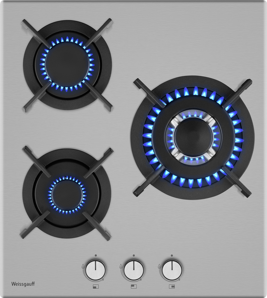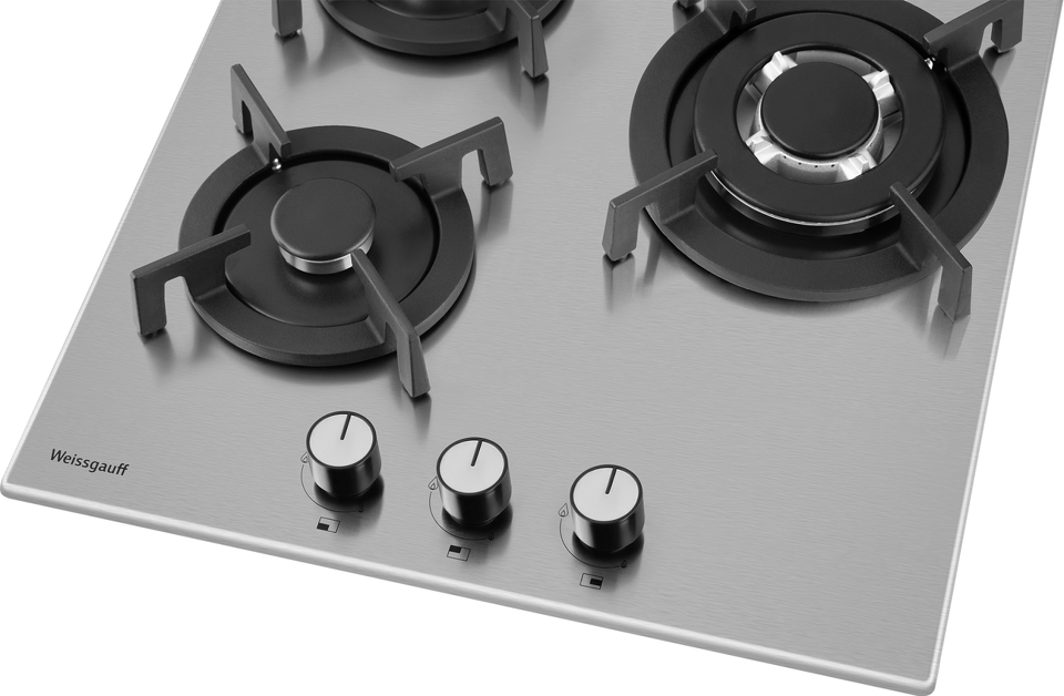 Встраиваемая независимая газовая панель Weissgauff шириной 45 см, исполненная в нержавеющей стали, оснащенная функциями газ-контроля и электроподжига - это стильное и компактное решение для вашей кухни!