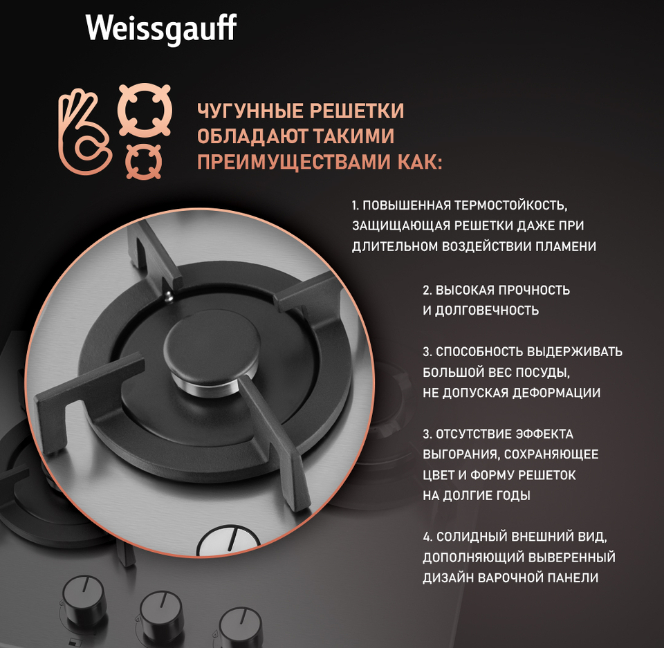 Ширина 45 см позволит установить газовую панель Weissgauff даже в самую небольшую кухню!