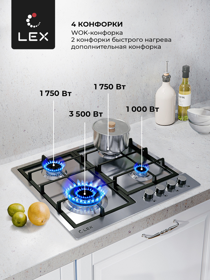 Общее количество конфорок 4