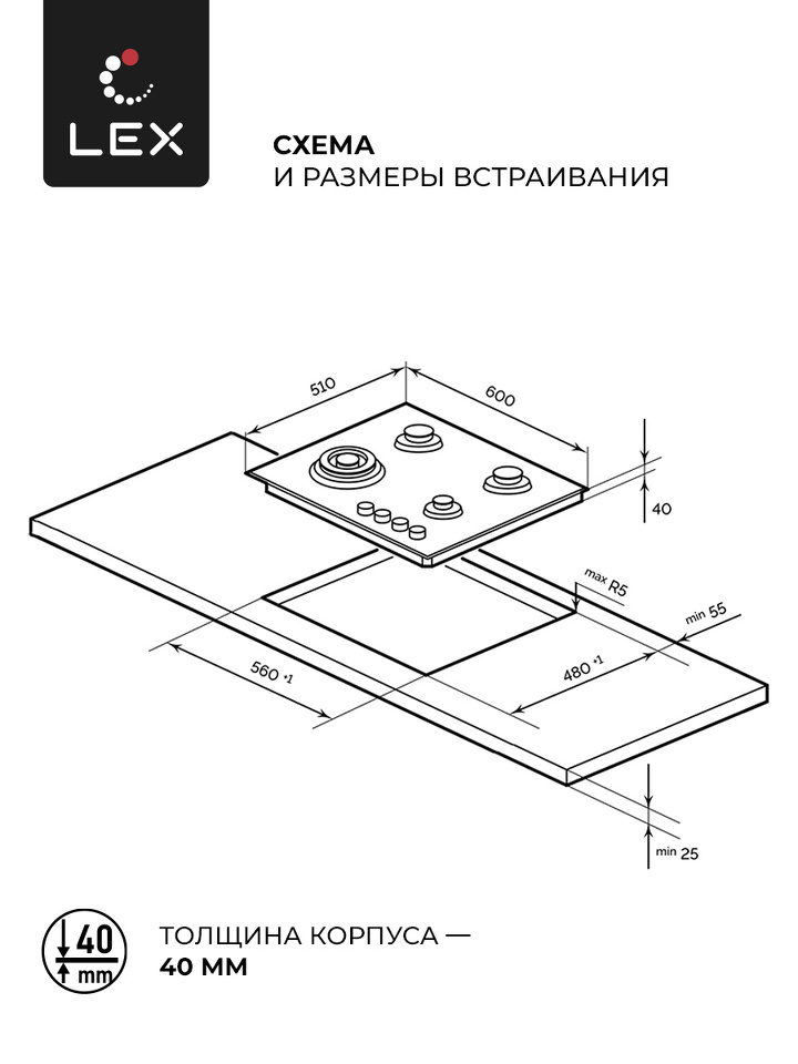 Размер варочной панели 60см
