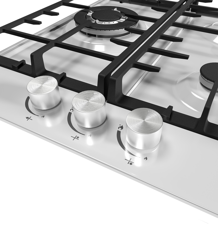 Регулировка пламени осуществляется удобными механическими переключателями путем нажатия на них и поворота до требуемой отметки. Функция автоматического поджигания конфорки позволяет быстро привести газовую панель в рабочее состояние и начать готовить любимое блюдо.