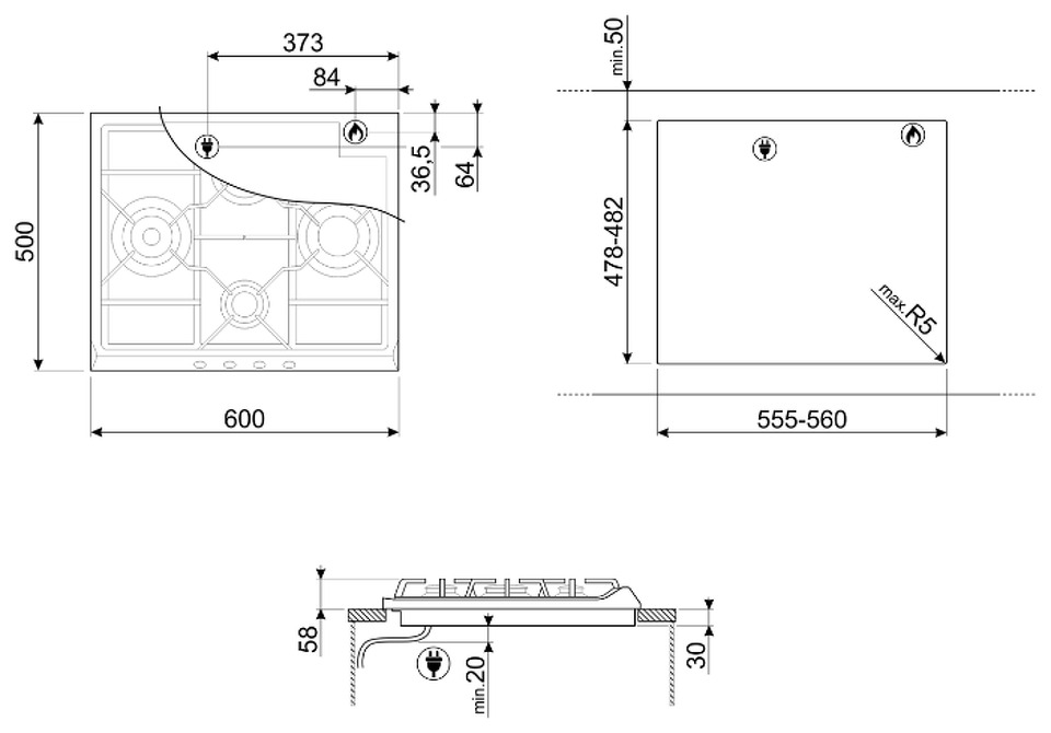 Размер варочной панели 60см