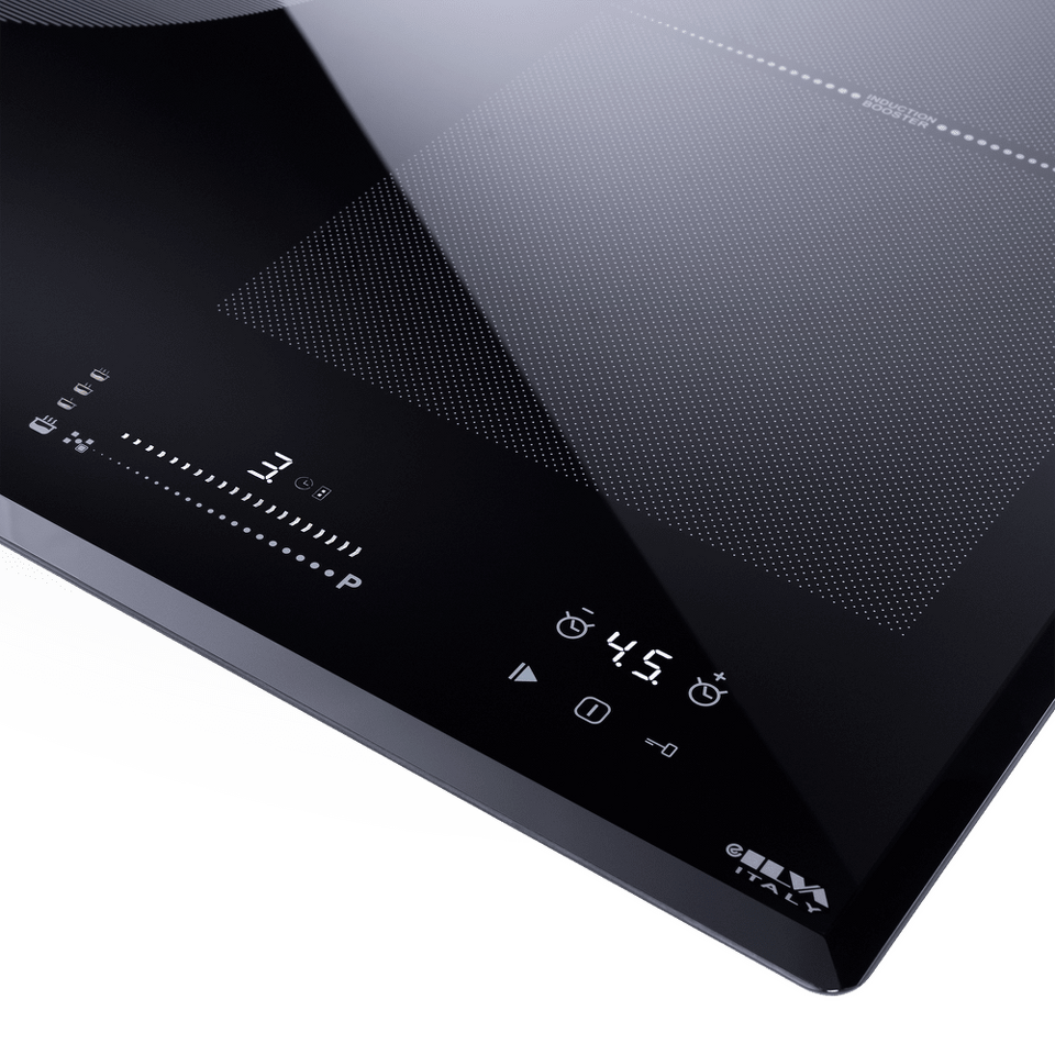 Индукционная варочная поверхность с технологией непрерывного нагрева и двумя Flex Zone. Итальянская стеклокерамика ILVA Glass и белая LED индикация управления.