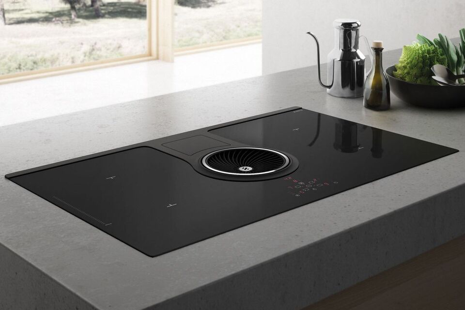 Функционал. Девять ступеней нагрева обеспечивают необходимую интенсивность кипения. Вытяжной вентилятор с производительностью 1200 куб. м в час в режиме отвода мгновенно очищает воздух от пара, дыма и запахов, идущих от варочной поверхности. Функция Bridge позволяет объединять две зоны в одну для наиболее комфортного расположения крупных блюд. Функция Temperature Manager устанавливает поддерживает постоянную температуру.