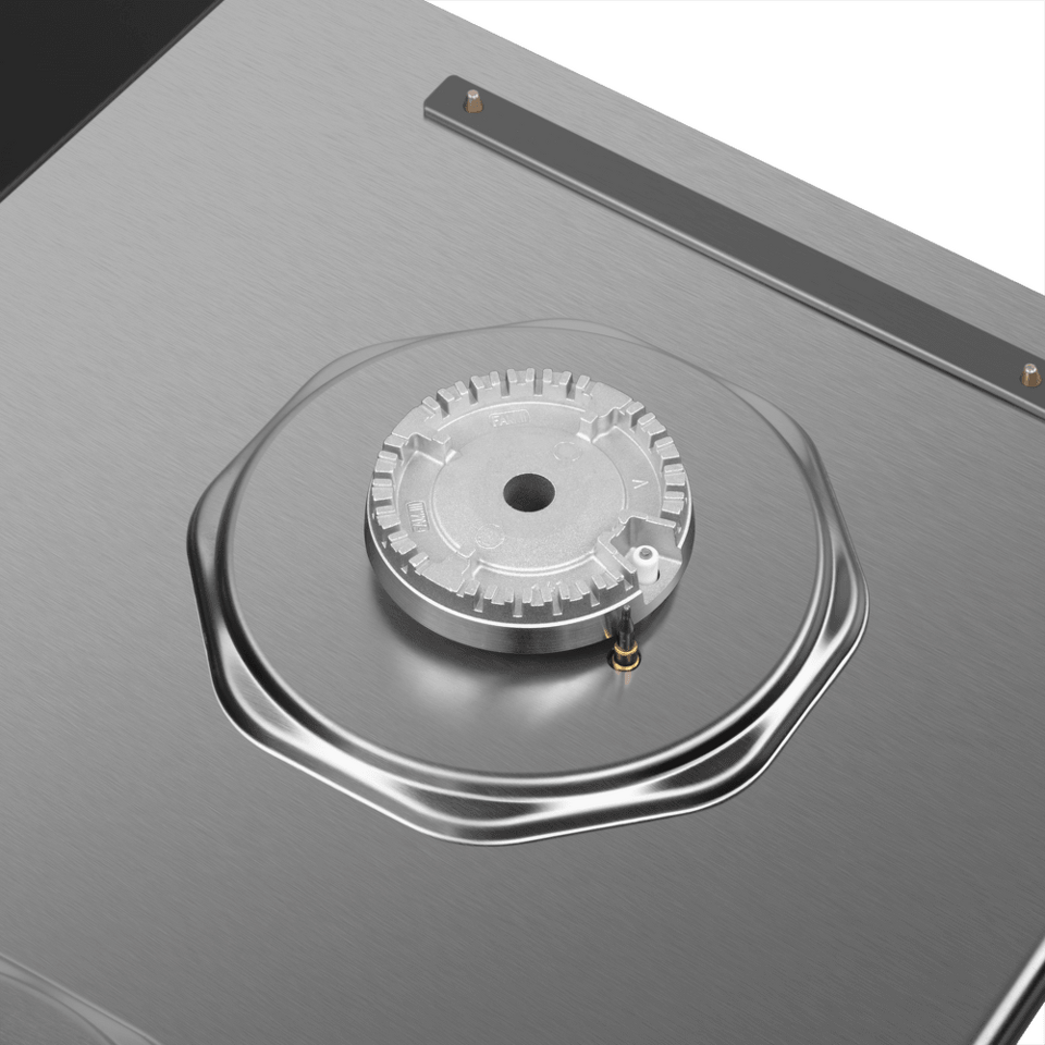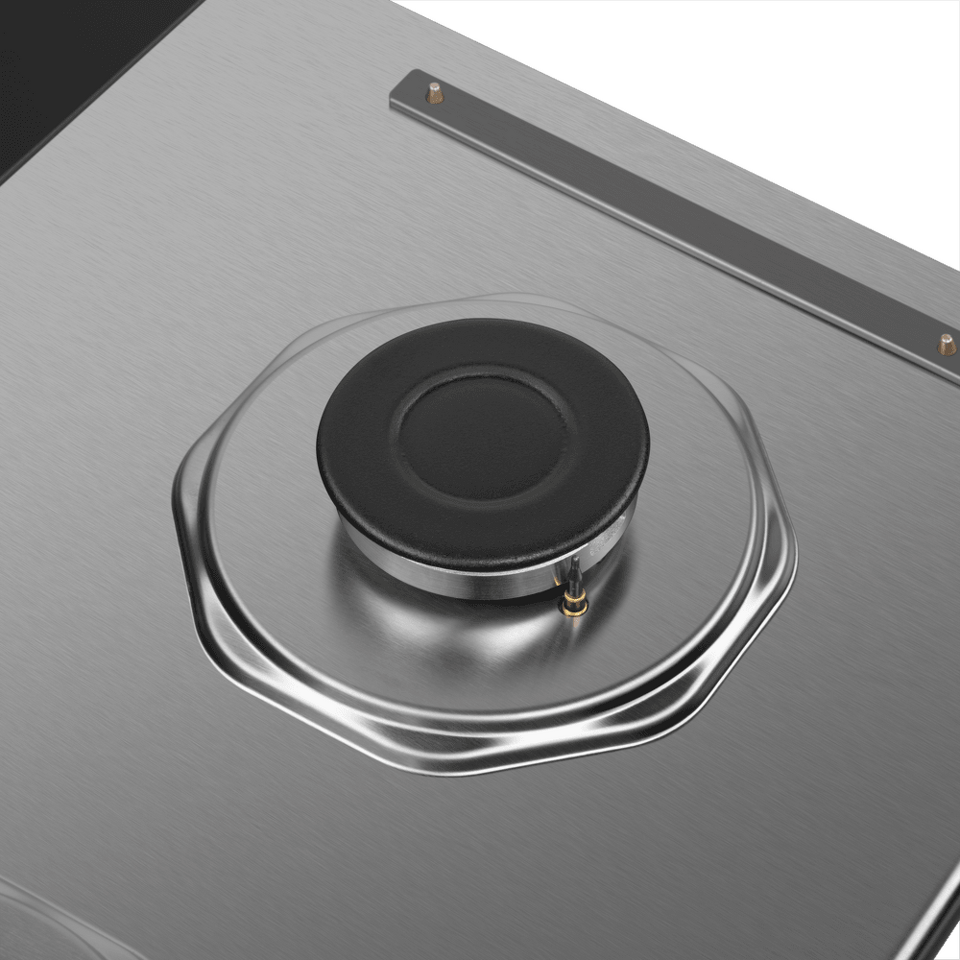 Две газовые конфорки, установленные в данной модели - это высококачественные итальянские горелки SABAF. Конфорки мощностью 1700 Вт и 1000 Вт, укомплектованы чугунной решеткой.