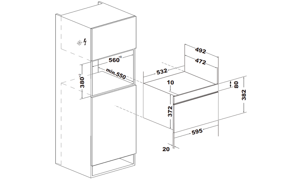 Ширина ниши для установки, см 56