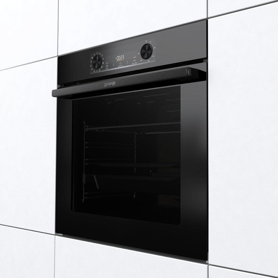 Независимая духовка Gorenje BOS6737E06FBG — великолепная модель черного цвета, обладающая огромным функционалом и большой вместительностью, благодаря чему в ней можно готовить крупные куски мяса, птицу целиком, а так же несколько блюд на разных уровнях одновременно. При этом сводчатая конструкция потолка камеры HomeMade создает эффект приготовления в дровяной печи, благодаря свободной циркуляции воздуха и равномерному прогреву со всех сторон при помощи опции вариогриль PerfectGrill.