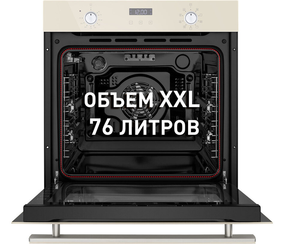 Объем 76 л при стандартной ширине 60 см позволяет готовить одновременно несколько блюд, разместив решетку или противень на одном из 6-ти уровней боковых направляющих. Два уровня оснащены удобными телескопическими направляющими. Внутреннее покрытие камеры выполнено из специальной легкоочищающейся эмали черного цвета.