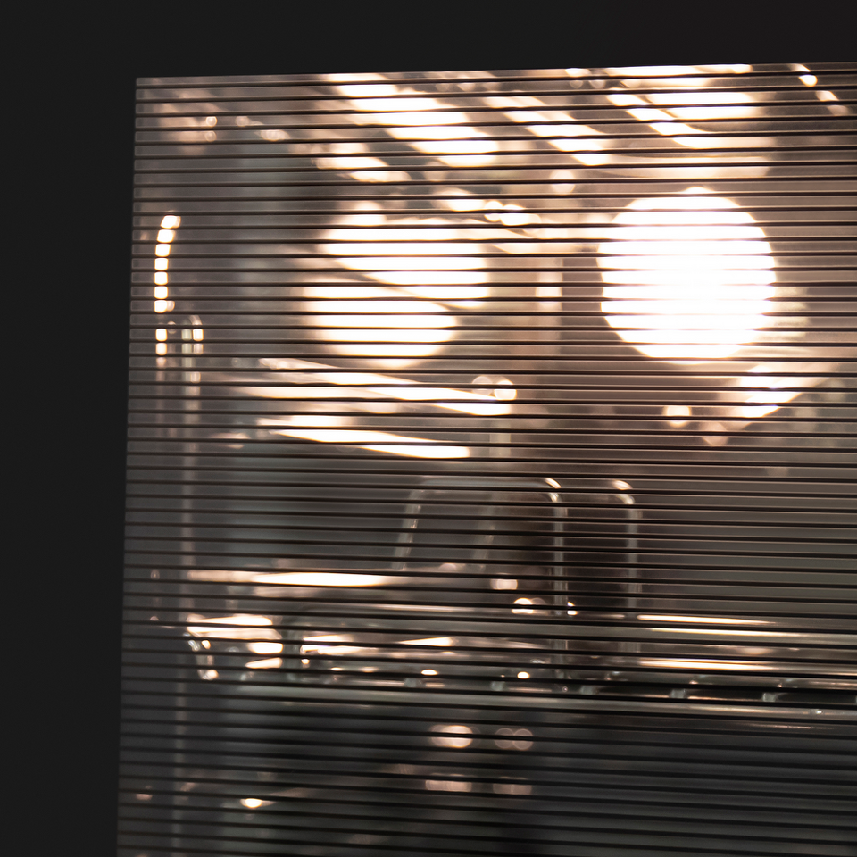 Трамп-линии нанесены на внутреннем стекле для создания эффекта непрозрачности фасада: при выключенном освещении не видно посуду, находящуюся внутри духовой камеры, а при включенном освещении можно в деталях рассмотреть весь процесс готовки.