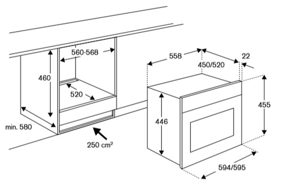 Высота ниши для установки, см 45