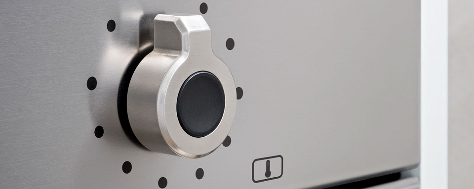 Духовой шкаф выполнен в цвете нержавеющей стали, ручка и регуляторы также металлические. Такой дизайн довольно универсален и подходит к мебели разных оттенков и материалов.