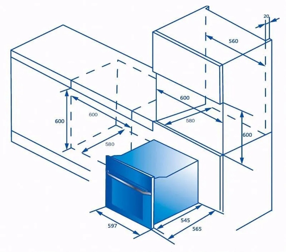 Габариты ниши для встраивания: 60x56x58 см