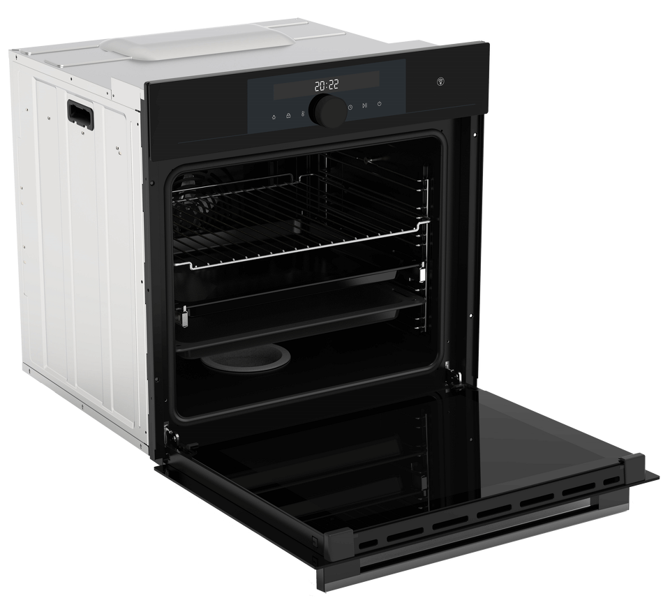 Духовой шкаф HOX-FP5RAGB серии Pacific5 имеет обновленную систему управления: сенсорная панель добавляет удобства в уходе, а поворотный переключатель, помимо своего расширенного функционала, является еще и лаконичным элементом дизайна. Особенностью этой модели является режим приготовления на пару: прием настоящих профессионалов, чтобы сделать блюдо сочнее и полезнее. Кроме того, духовой шкаф оборудован выдвижными телескопическими направляющими, функцией акваочистки и тройным остеклением дверцы, что делает использование и невероятно комфортным, и безопасным.