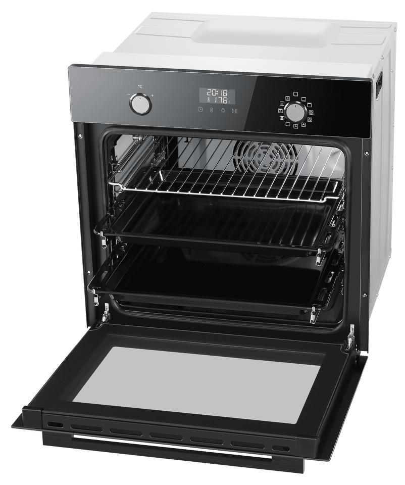 Духовой шкаф HOX-P11CGB имеет современный лаконичный дизайн и богатое оснащение дополнительными опциями. 11 режимов приготовления, включая режимы с конвекцией и специальный режим расстойки теста, большой внутренний объем и телескопические направляющие для противней позволят Вам с легкостью готовить любимые блюда, неизменно получая отличные результаты. Также в этой модели Вы непременно оцените плавное закрывание дверцы, оснащенной 3-мя стеклами, и удобство очистки.