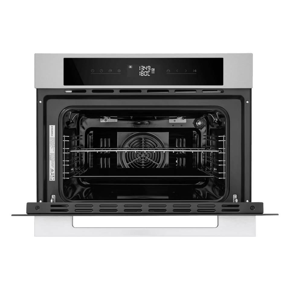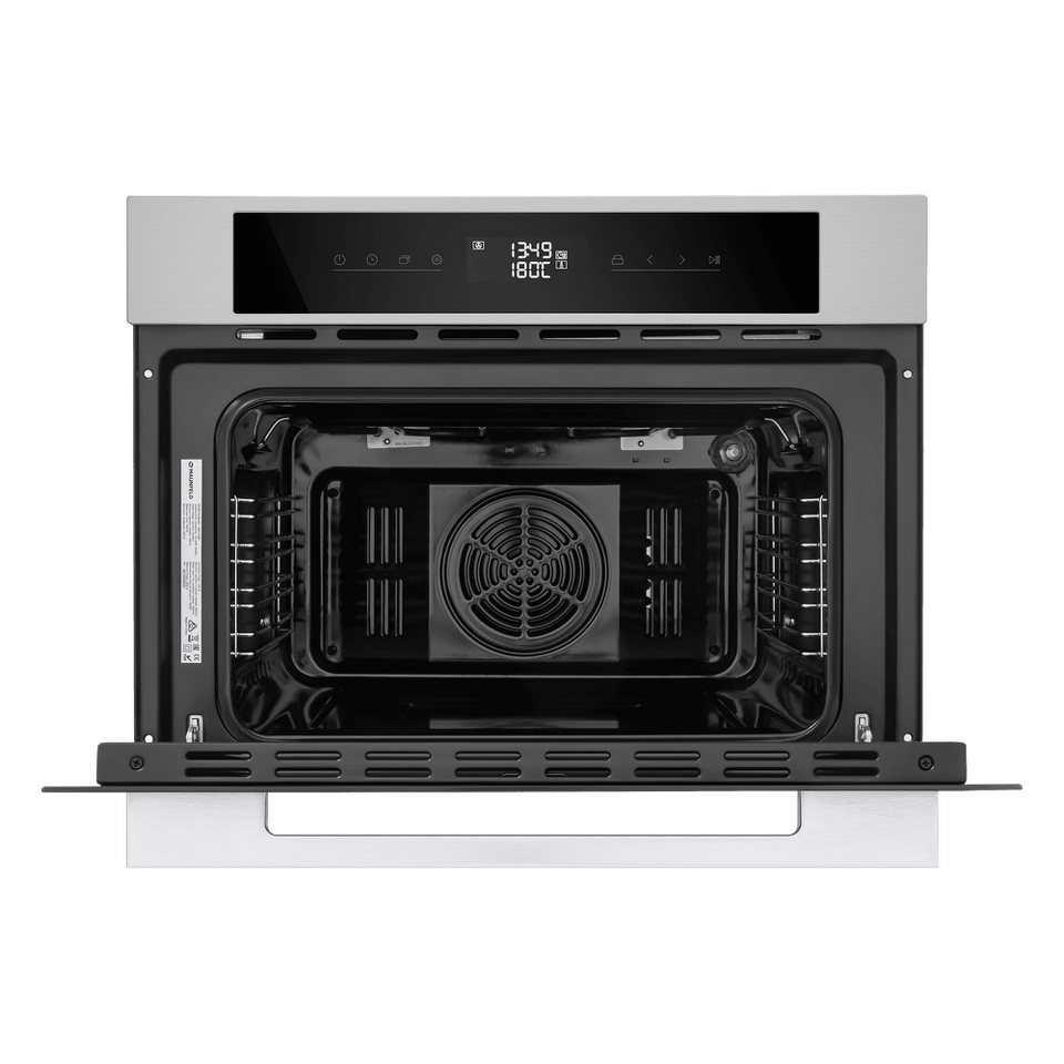 Фронтальная панель сделана из высококачественного жаропрочного стекла . Цельнометаллическая ручка дверцы из матированной нержавеющей стали лаконично поддерживает общий стиль и не нагревается во время готовки.