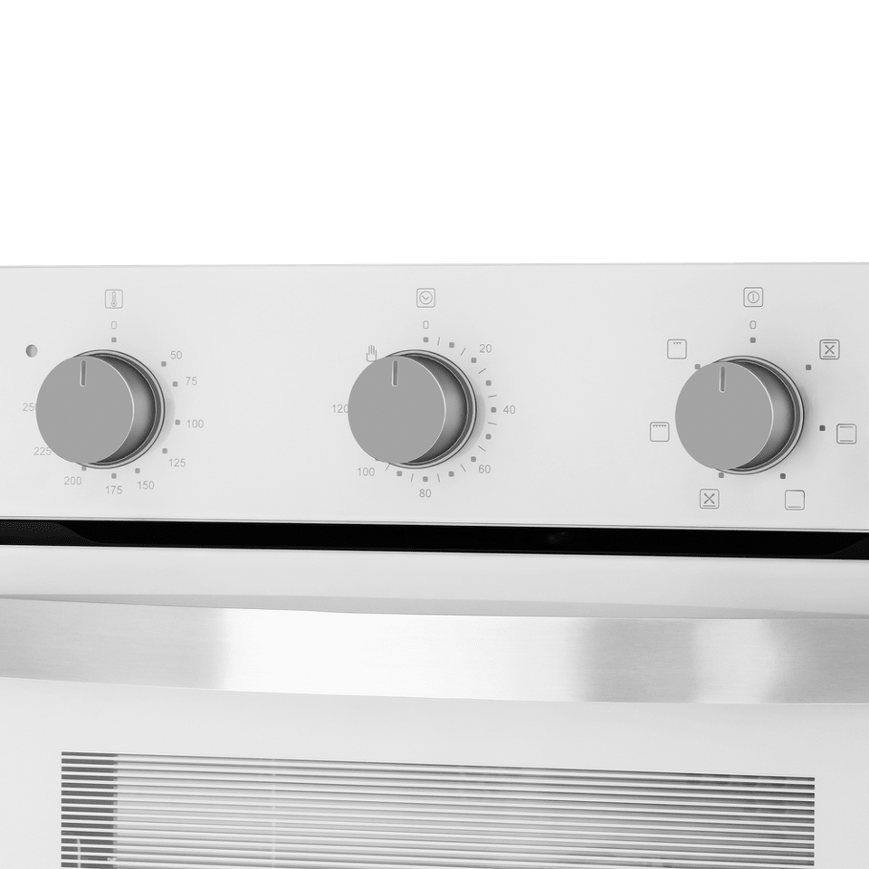 Механическое управление работой духовки осуществляется утапливаемыми поворотными ручками. Можно установить таймер (до 120 мин), выбрать температуру (50°-250°C) и один из 6 режимов работы: традиционный нагрев, большой гриль, конвекция с нижним нагревом, нижний нагрев, конвекционный нагрев, малый гриль.