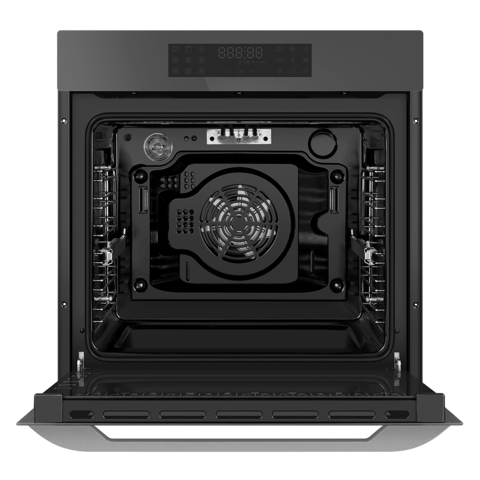 Объем 76 л при стандартных размерах 60 см позволяет готовить одновременно несколько блюд, разместив решетку или противень на одном из 6 уровней боковых направляющих. Два уровня оснащены удобными телескопическими направляющими. Внутреннее покрытие камеры выполнено из специальной легкоочищающейся эмали черного цвета.