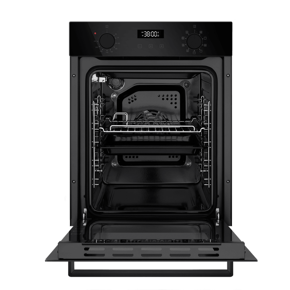 Компактный электрический встраиваемый духовой шкаф объемом 49 л. и шириной всего 45 см позволяет готовить ваши любимые блюда, разместив решетку или противень на одном из 5 уровней боковых направляющих. Внутреннее покрытие камеры выполнено из специальной легкоочищающейся эмали черного цвета.