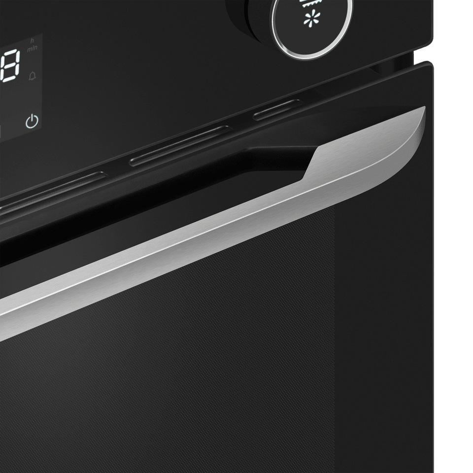 Простота управления, легкий уход за духовкой, дополнительная безопасность и защита от случайного изменения настроек — все это благодаря поворотными переключателями, которые не только обладают лаконичным дизайном, но и имеют встроенный дисплей для отображения температуры и режима приготовления.