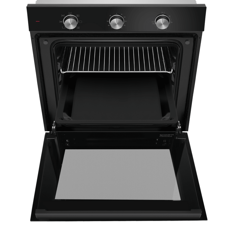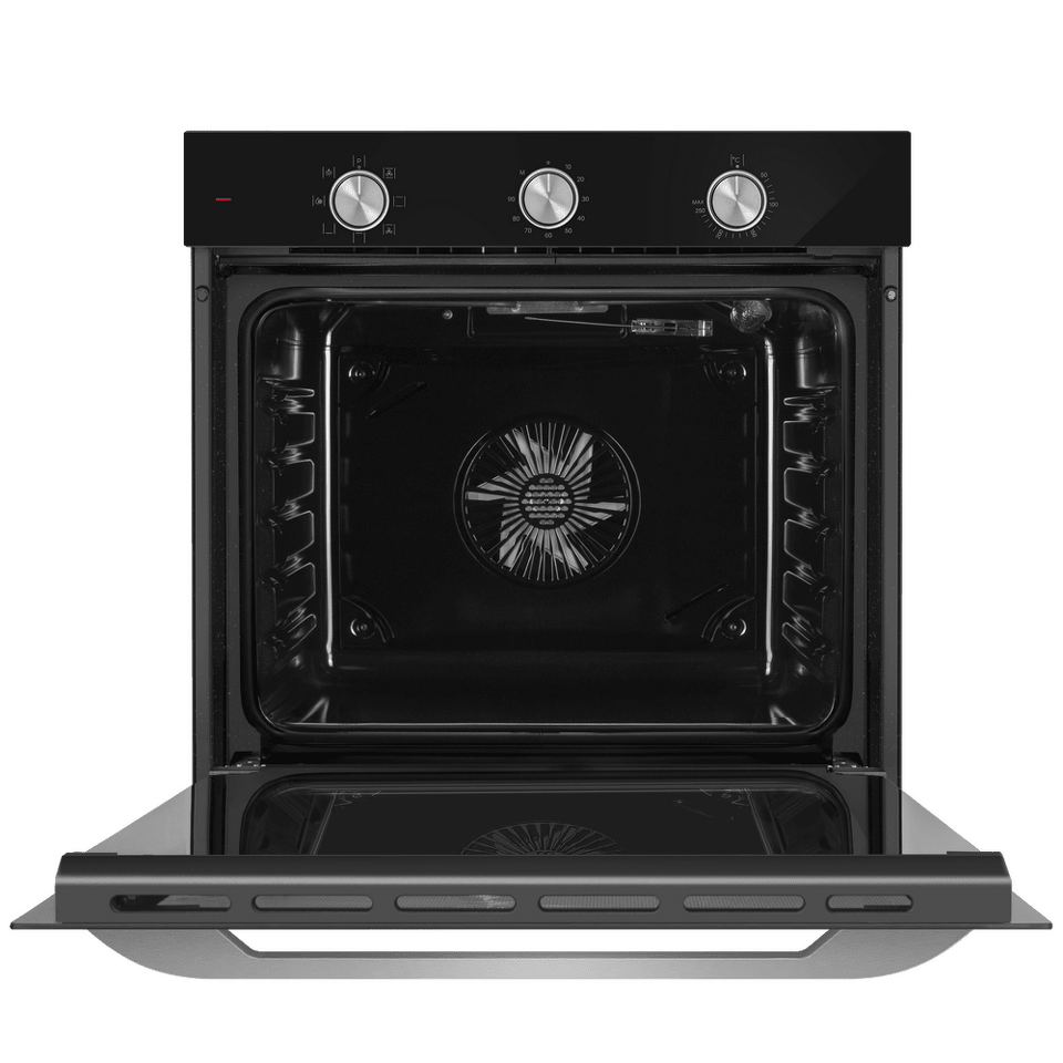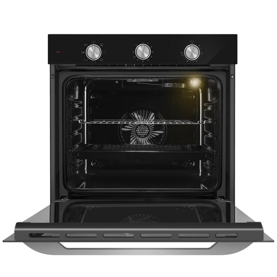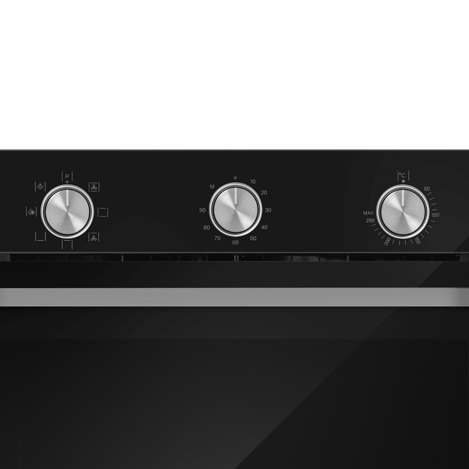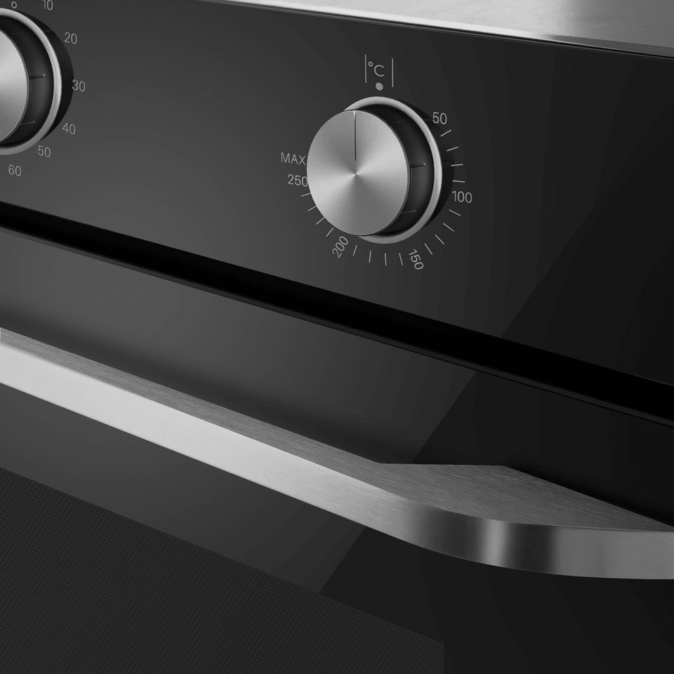 Управлять духовкой просто – механические переключатели с утапливаемыми ручками надежны и интуитивно понятны. Встроенный таймер поможет не пропустить момент готовности блюда. А когда нужно проверить, как идёт процесс, достаточно бросить взгляд через тройное стекло дверцы – мощная подсветка прекрасно освещает всю камеру.