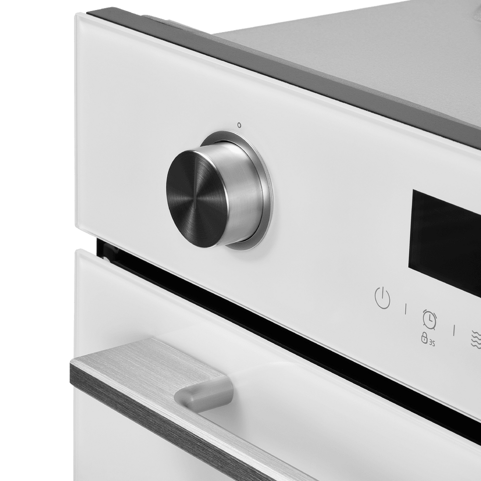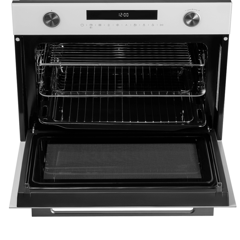Фронтальная панель сделана из высококачественного жаропрочного стекла . Цельнометаллическая ручка дверцы из матированной нержавеющей стали лаконично поддерживает общий стиль и не нагревается во время готовки.