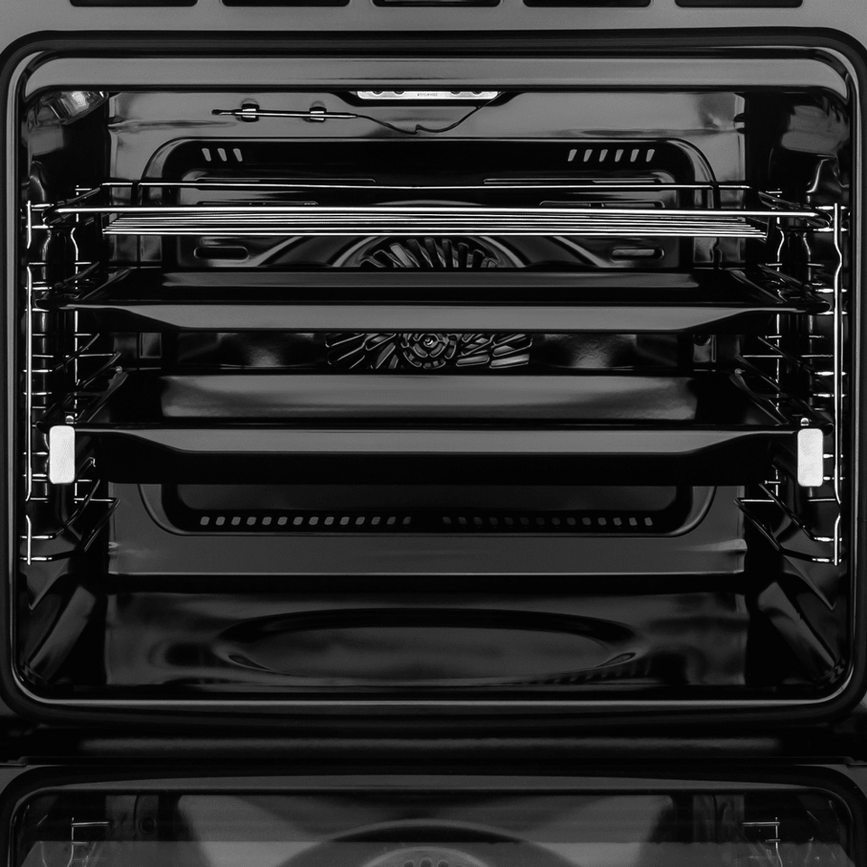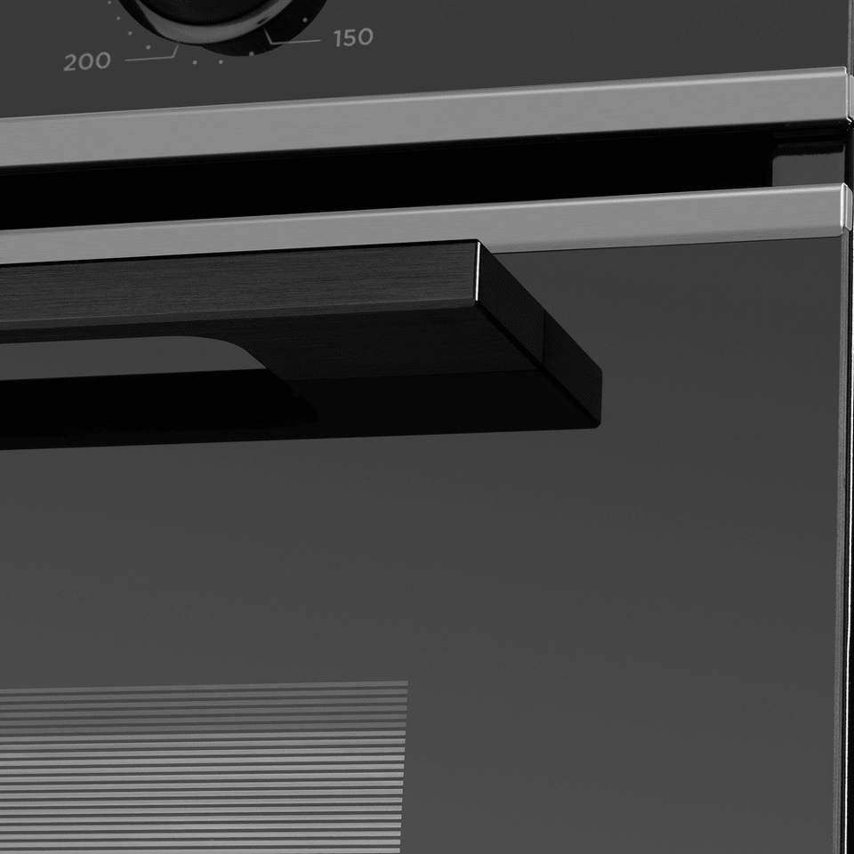 Дверца духового шкафа оснащена тройным стеклом - это гарантия медленного нагревания внешнего стекла, что создает холодный фронт и делает процесс приготовления безопасным исключая возможность ожога при касании.