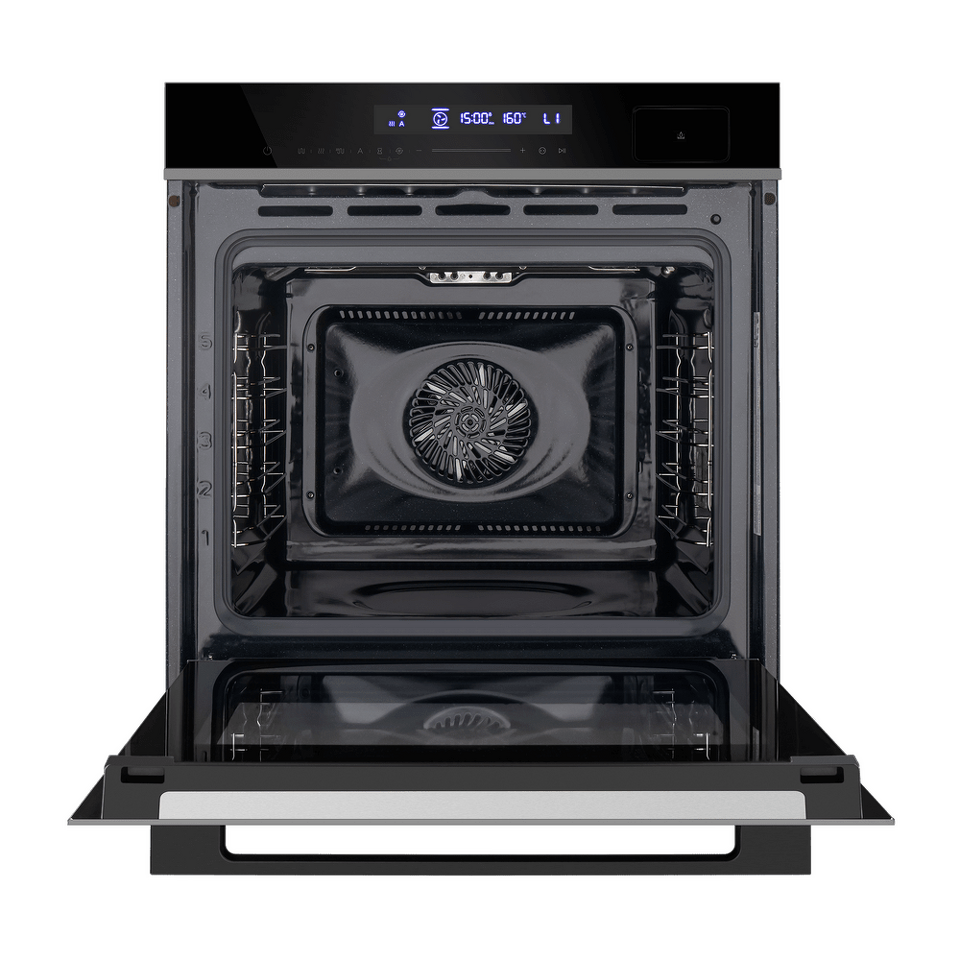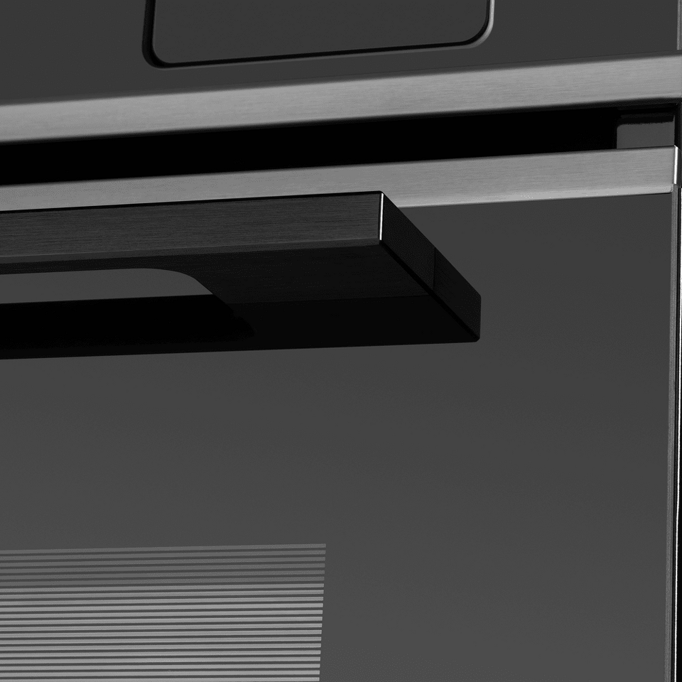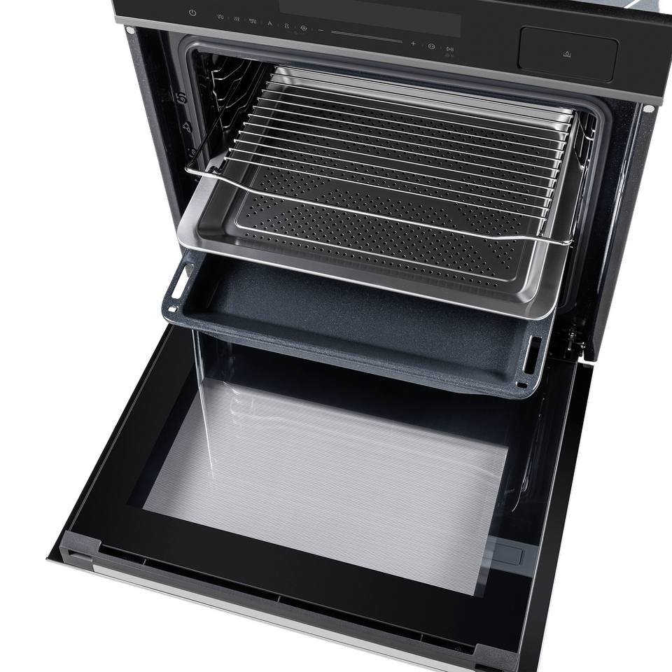 Стекло с тонировкой позволяет создавать визуальный эффект однородности стекла, при выключенном освещение внутреннее содержимое духовой камеры не видно, будь то сковородки, противни т.д, а при включенном освещение весь процесс приготовления виден без помех.
