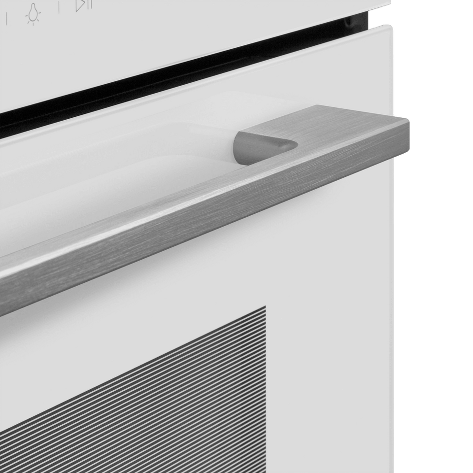Трамп-линии на внутреннем стекле дверцы создают визуальный эффект непрозрачности фасада: при выключенном освещении не видно посуду, находящуюся внутри духовой камеры, а при включенном освещении можно в деталях рассмотреть весь процесс готовки.
