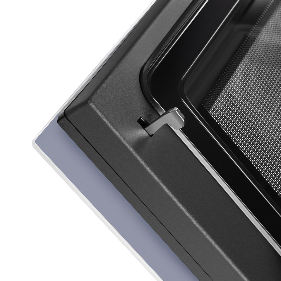 Фронтальная панель сделана из высококачественного жаропрочного стекла. Цельнометаллическая ручка дверцы из матированной нержавеющей стали лаконично поддерживает общий стиль и не нагревается во время готовки.