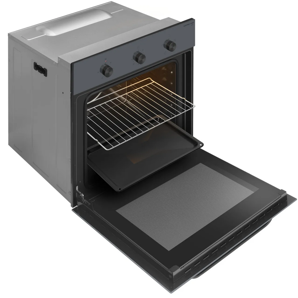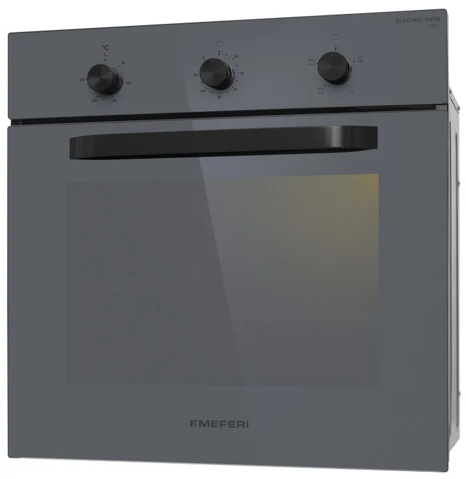 MEFERI MEO604GR LIGHT — современная серая духовка, которая органично впишется в кухонный гарнитур и подойдёт для ежедневной готовки и домашней выпечки. Модель сочетает лаконичный дизайн, понятное механическое управление и энергоэффективность класса А, обеспечивая комфортное приготовление блюд для всей семьи.