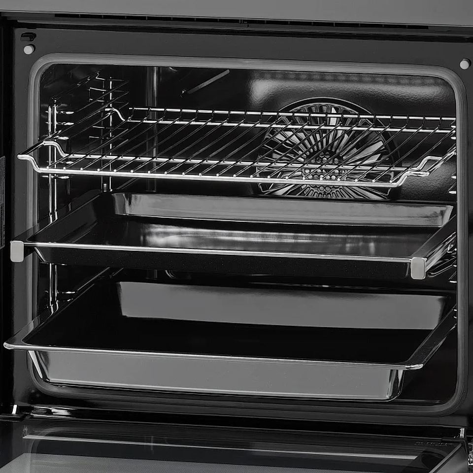 Электрический духовой шкаф MYSTERIUM max 60 выполнен в современном минималистичном дизайне из перламутрово серого закаленного стекла с полностью сенсорным управлением Touch Control. Модель встраивается в шкаф шириной 60 см и имеет полезный объем Extra Large - 78 литров, благодаря которому вы без проблем сможете готовить большое количество порций на нескольких уровнях. В базовую комплектацию входит все необходимое для приготовления: стандартный и глубокий противни, решетка для гриля. Дверца духового шкафа выполнена из закаленного стекла Schott и имеет усиленную теплоизоляцию LOW-E. MYSTERIUM max 60 оснащен 15 режимами работы, авторецептами, грилем, 4D-конвекцией, функцией разморозки, удобным электронным таймером с функциями напоминания/отложенного старта/отключения. Для вашего удобства в духовом шкафу предусмотрены доводчик плавного закрытия дверцы, а также телескопические направляющие на одном уровне, которые обеспечат легкий доступ к блюду во время приготовления.